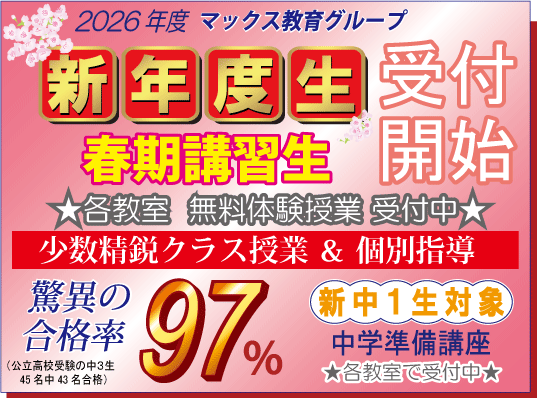 - 【全校舎】2025年度 新年度生募集!各校舎までお問い合わせよろしくお願い申し上げます。